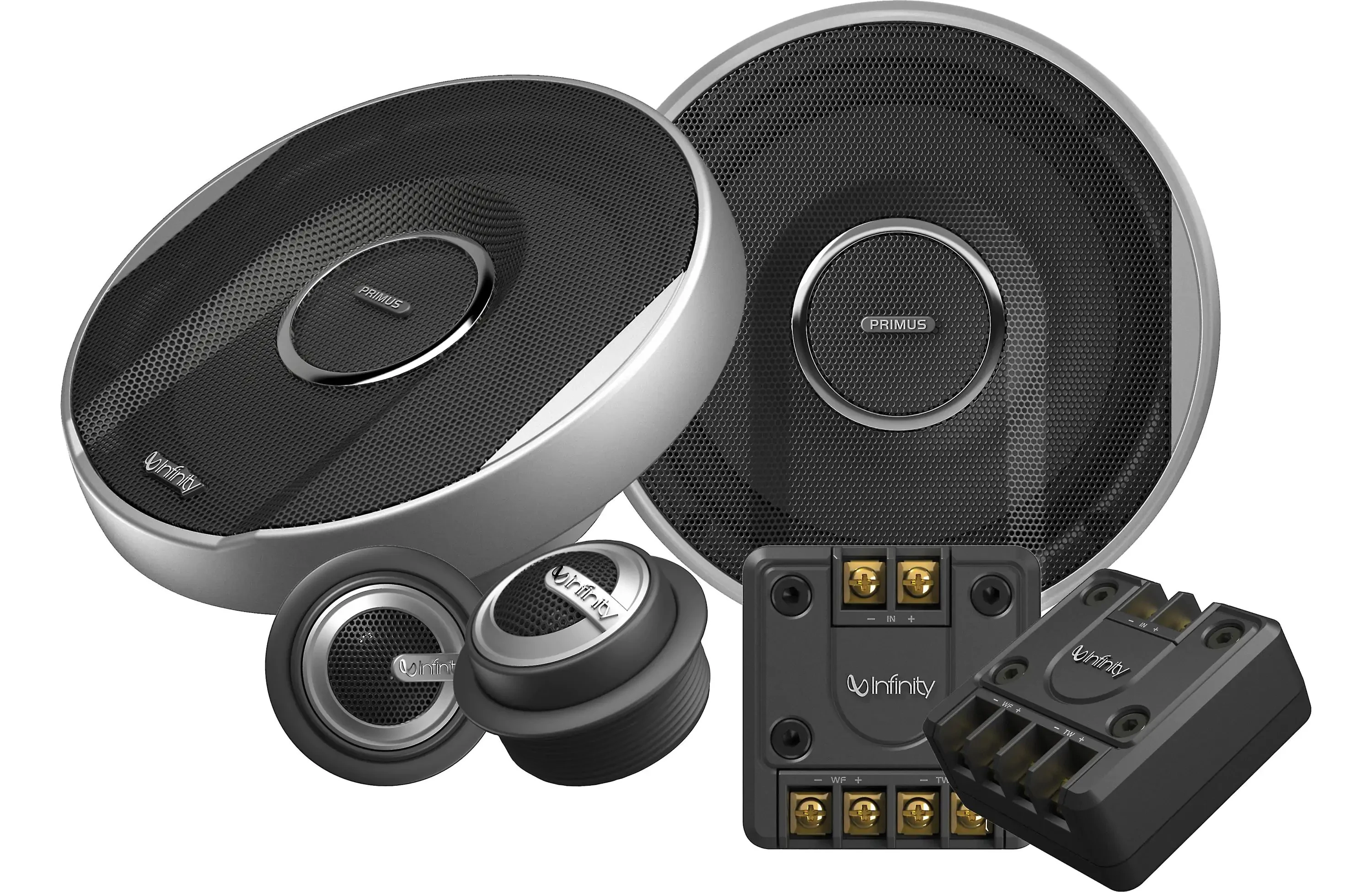 component speaker system includes 2 woofers, 2 tweeters, and 2 crossovers